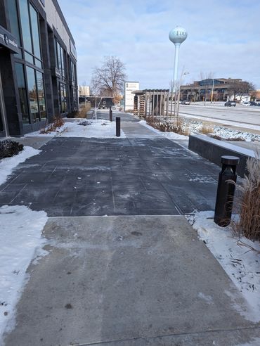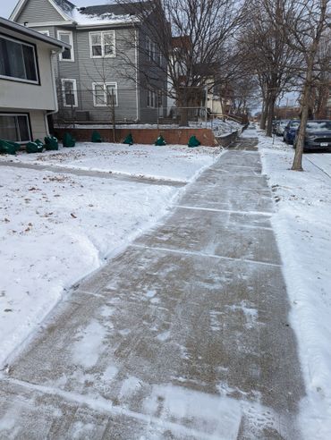 DE-ICING: Application of eco-friendly ice melt to reduce slip hazards.